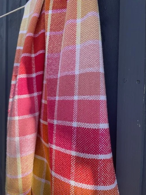 This color gamp piece is woven with 100% Bourette silk, making it the perfect lightweight blanket or wrap for cool summer evenings. Use it as a bed topper, a couch cover, a wrap around your shoulders, or a summer blanket on a day bed.
