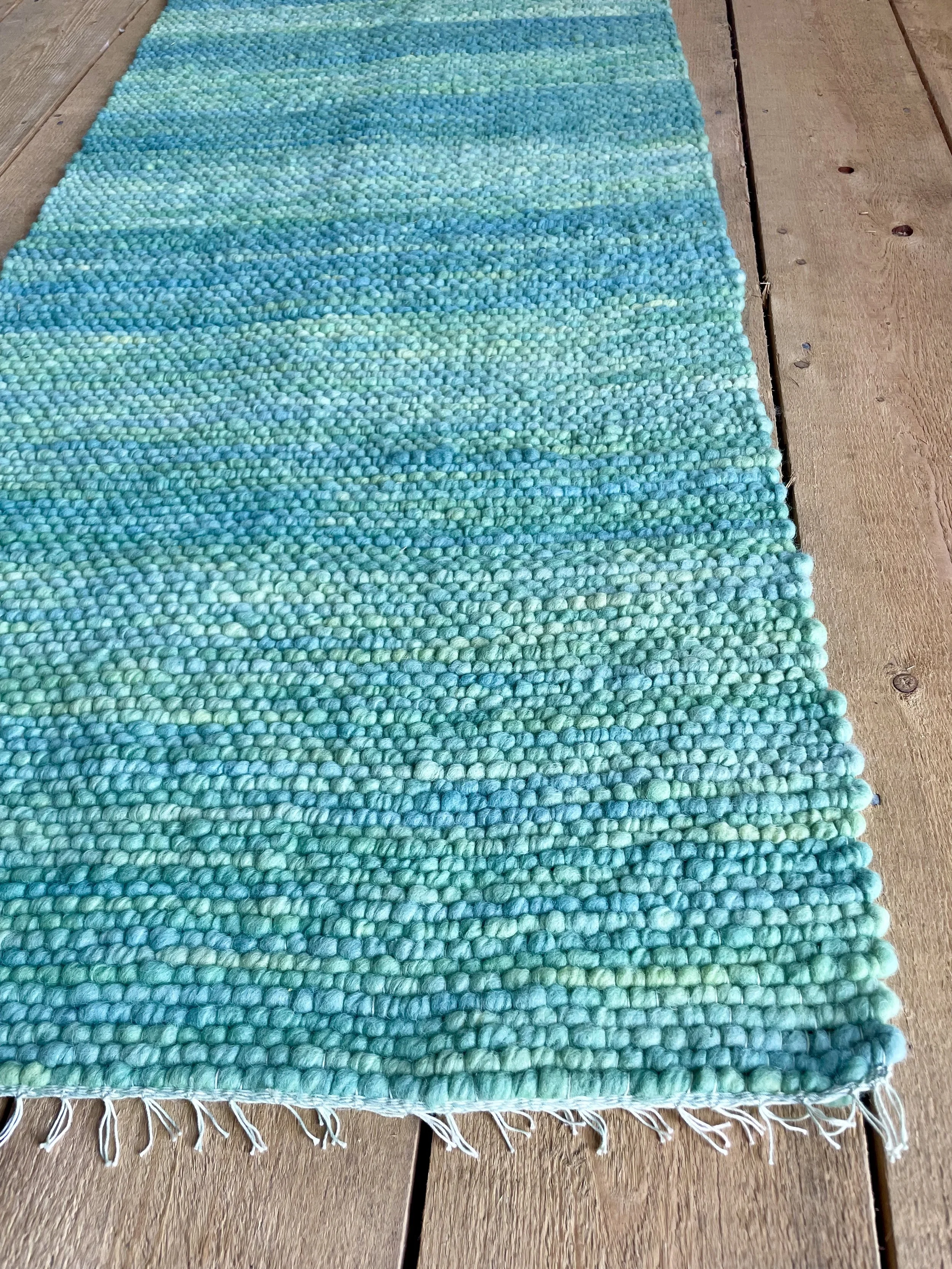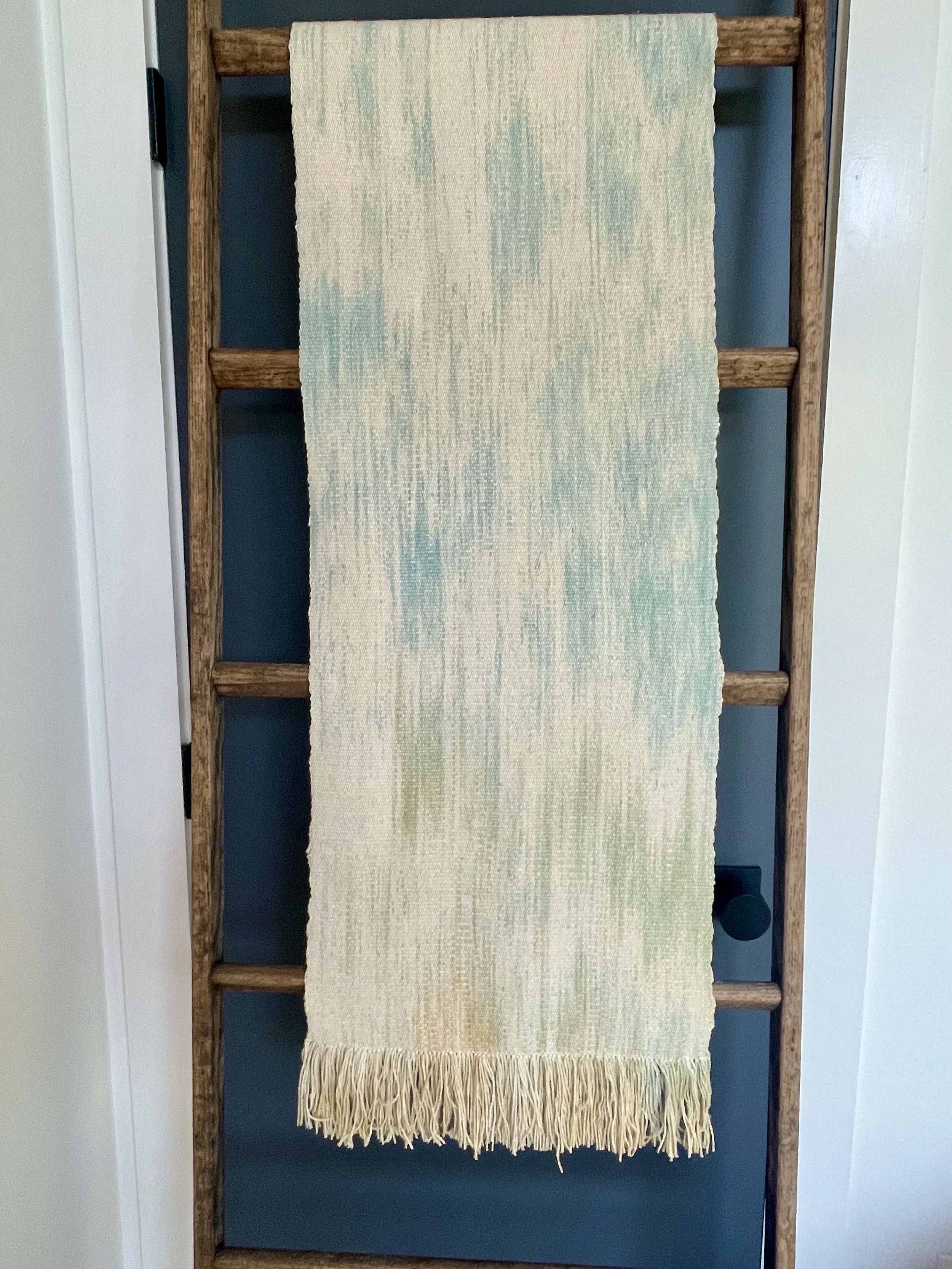 Hand painting warp and weft with botanical dyes and then using a higher sett to create a warp facing weave results in a watercolor effect