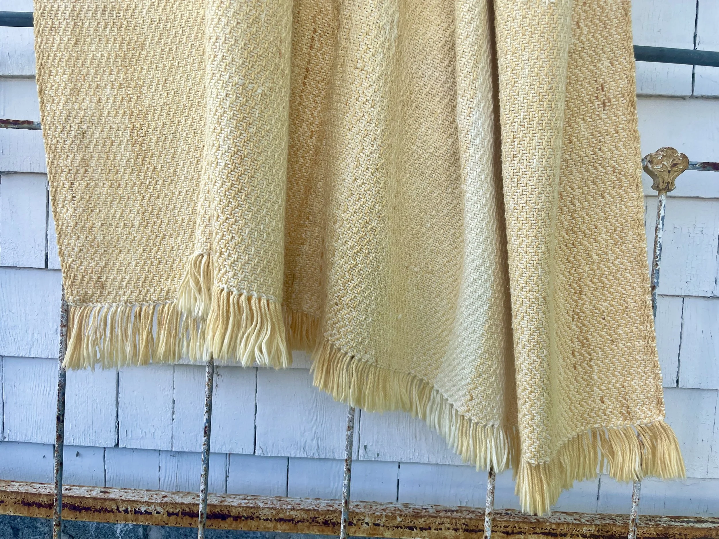 Botanically dyed silk/wool yarn woven into a light and lofty summer wrap