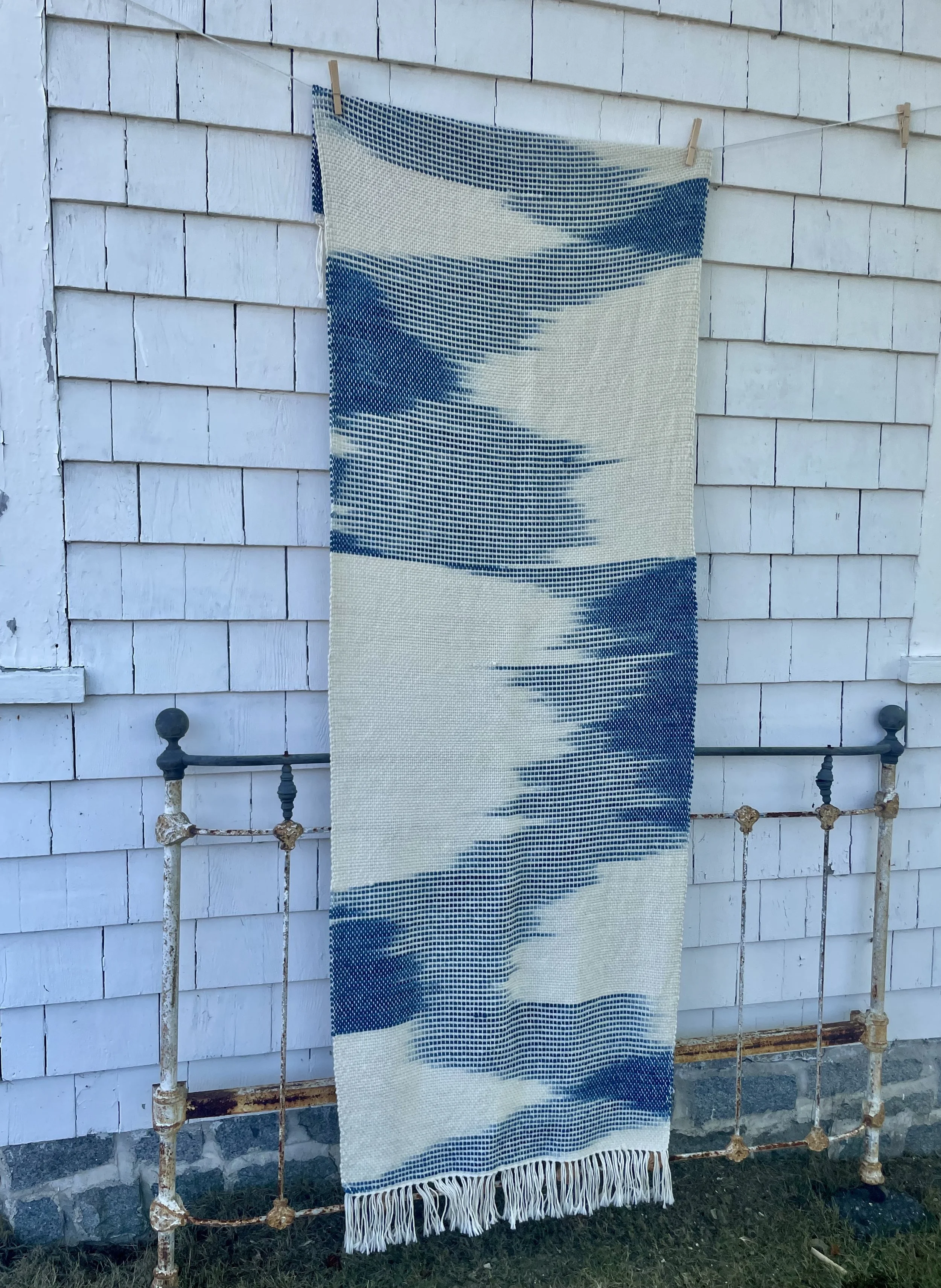 Hand painted warps and a warp-facing sett creates a watercolor effect