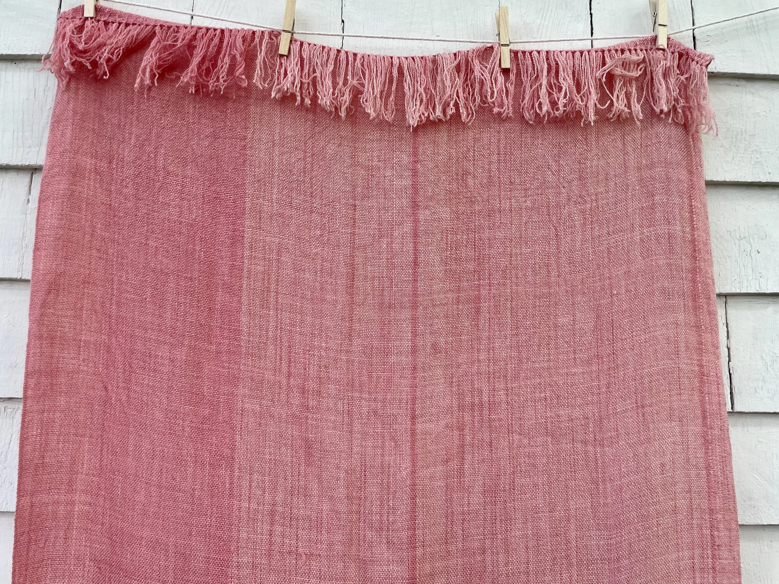 Notes: This yarn was extremely hard to work with - I think the combination of its wool content, the fine fibers, and the hand dyeing process made it extremely sticky. As a result, it was incredibly difficult to wind onto the back beam, because the fibers kept sticking together. It helped to thread it through heddles 1-8 (instead of just 1-4, which is all that plain weave really required). I had to cut a significant portion off before tying to the front beam because of unequal lengths. As a result, combined with loom waste and shrinkage, I lost more than 50” of the warp length. While the finished product is beautiful, I wouldn’t warp with this yarn again, particularly if it was hand dyed.