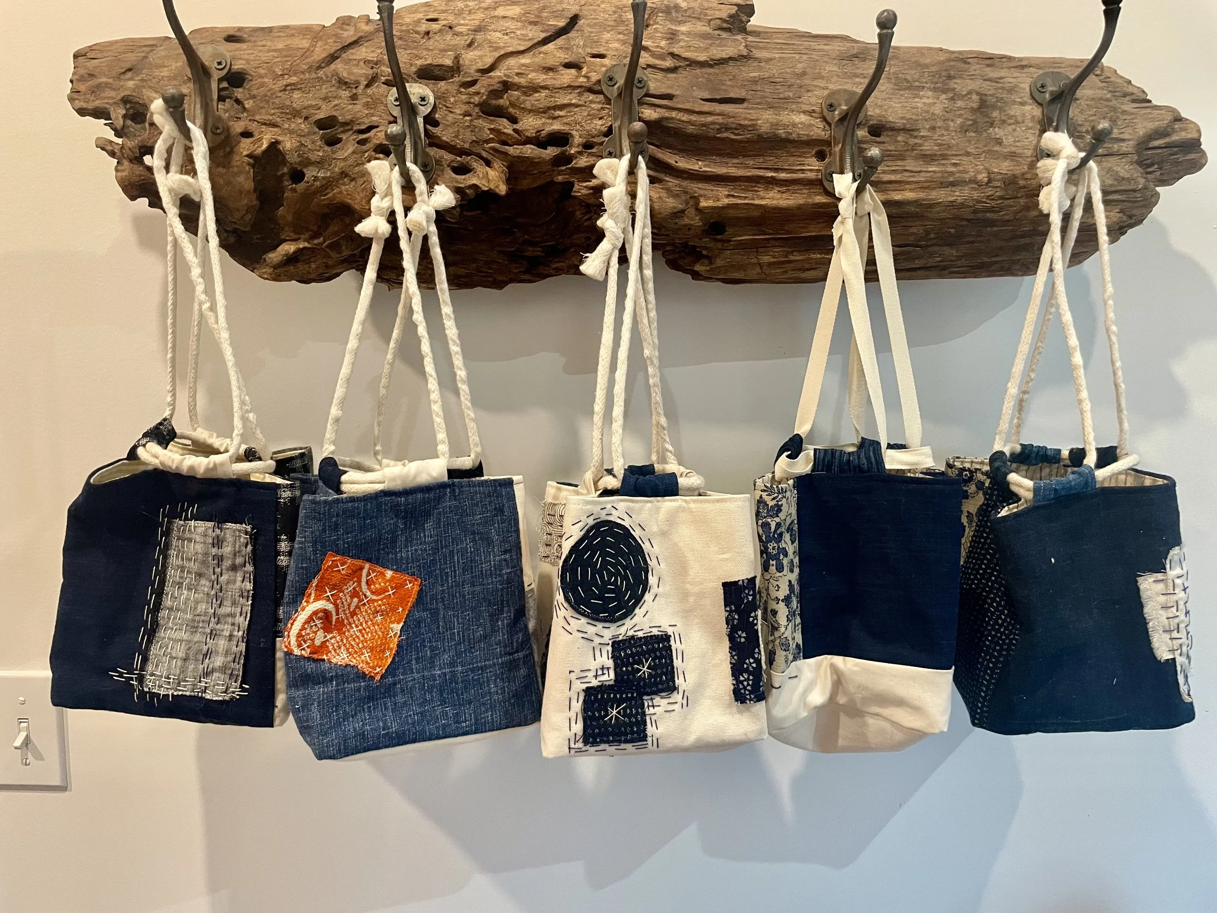 Notes: Added fusible interfacing to lining pieces, sewed both pattern size and upsized to 7” square bag w/ 8” square bottom (placed tabs from left edge as follows: 3 1/2”, 10 1/2”, 17 1/2”, 24 1/2”)