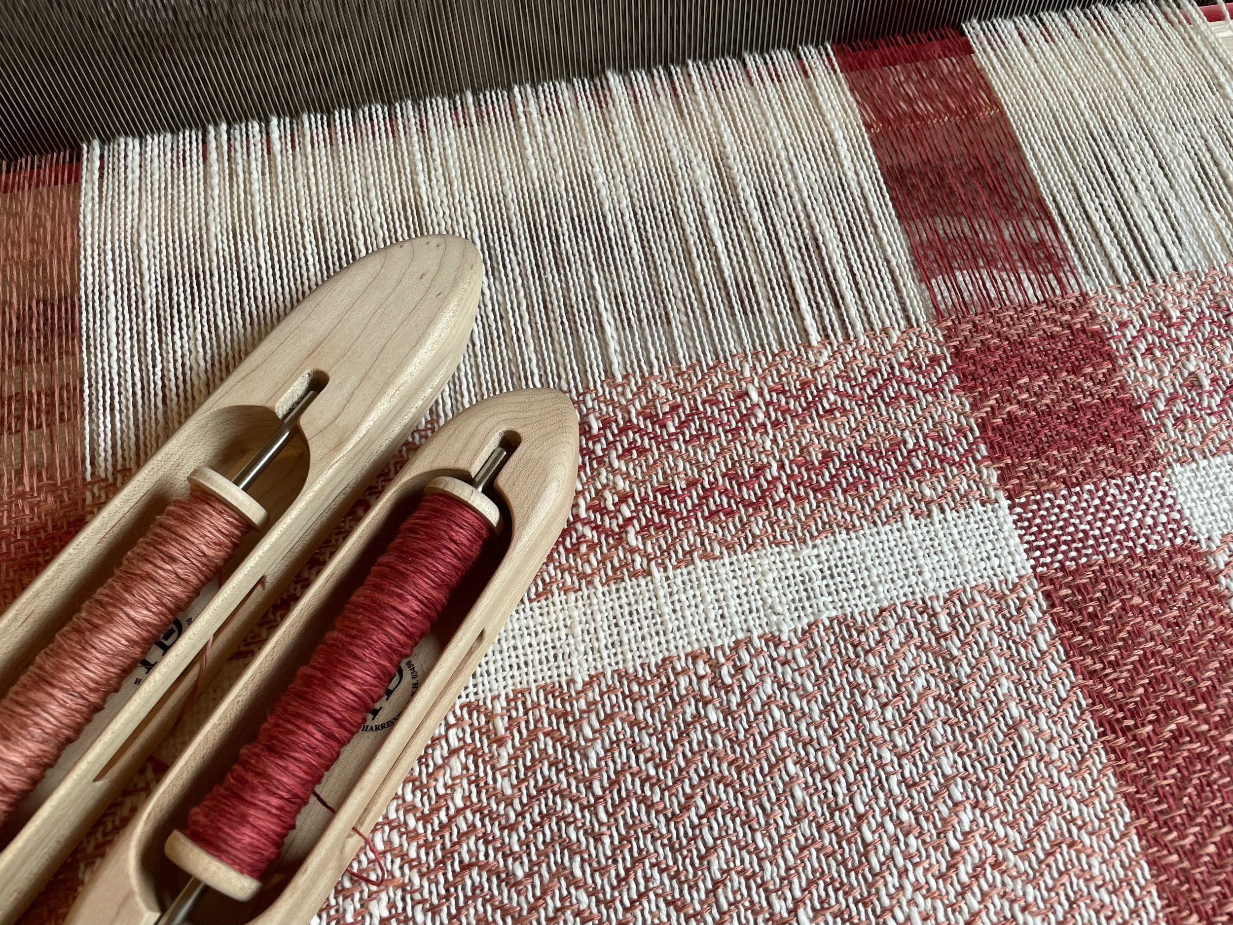 Duet from Gist Yarn in currant and rust (one cone/ea for warp and weft)